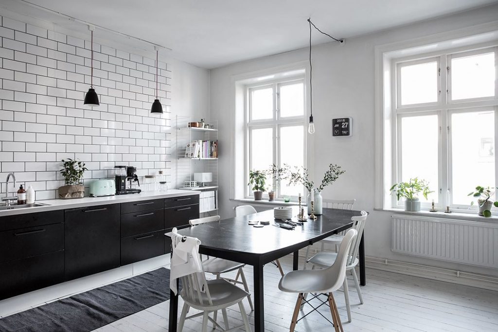 Estética nórdica. Se estila amueblar las casas de manera minimalista. Las líneas rectas y la decoración ordenada, bien escogida y sencilla están en boga, y no solo en dormitorios o estudios. Las cocinas de estilo nórdico se caracterizan por su linealidad y buenas calidades. Los acabados incluyen detalles discretos que combinan bien con suelos que imitan a madera, para aportar calidez al espacio.